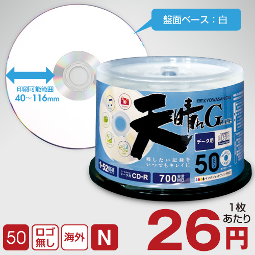 - RiTEK社製 天晴れGRADE CD-R<内径鏡面シリーズ> / 50枚スピンドル / 52倍速